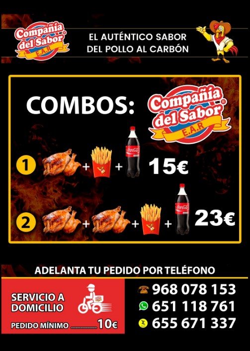 Bienvenido a Compañía del Sabor E.A.R., tu mejor opción para disfrutar de comida deliciosa para llevar y a domicilio en Águilas, Murcia. Nos especializamos en ofrecer una variedad de platos que satisfacen todos los gustos. Ya sea que busques un combo completo o un plato individual, aquí encontrarás lo que necesitas. ¡Descubre nuestra oferta y haz tu pedido hoy!